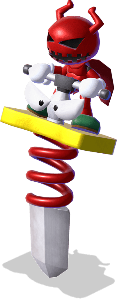 A robot formerly affiliated with the “Smithy Gang”, a team of machines who wanted to rule the world with weapons. Mack represented swords, which is reflected in his rather unusual body: While the caped “imp” is the most visibly expressive feature, the bladed “pogo stick” is just as much a part of him, even if between the two there’s only one mind.