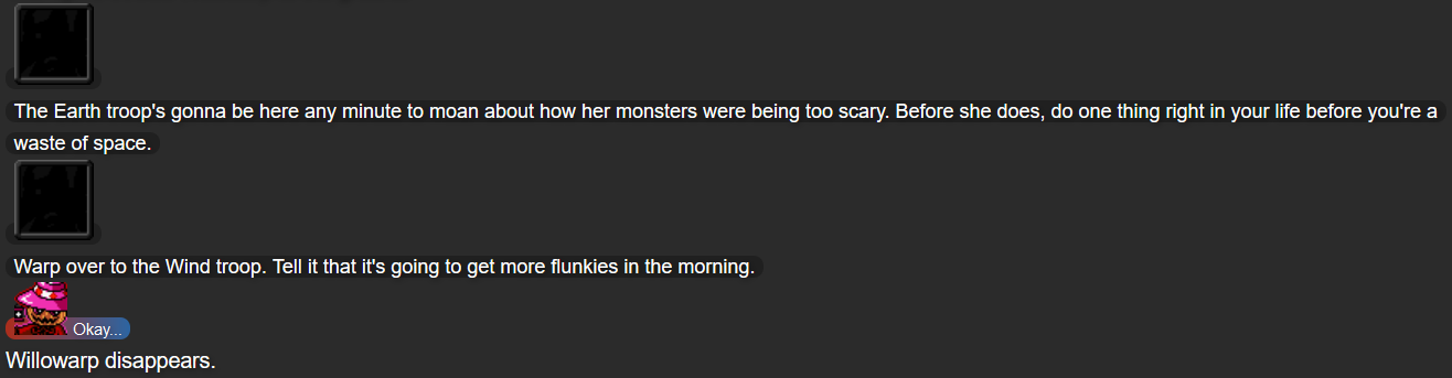 • The Seekers of Strength: A group of four characters (led by Mega Beedrill, who isn’t seen until this story) who seem to want to conquer Dimension 2. By the start of this interlude, the two confirmed members are Willowarp and Rottentest, but a third “wind troop” is mentioned.
