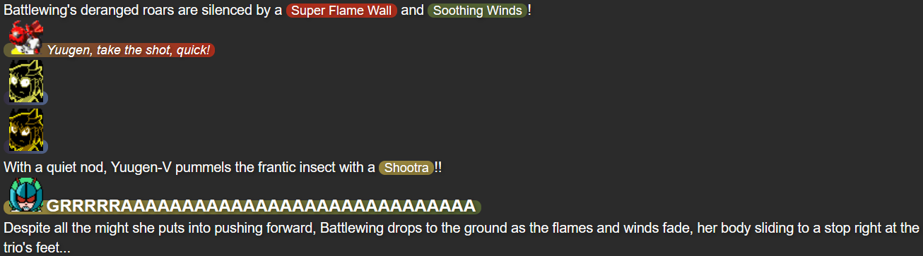 - Battlewing RGR: An original character based on the character “Wriggle Nightbug” from the Touhou Project series, and various robot designs from the “mech anime” genre of television series.