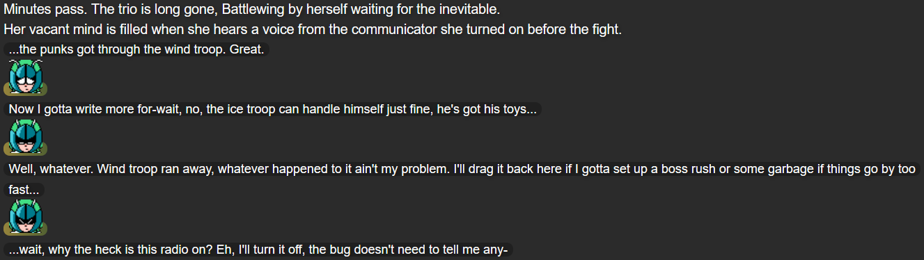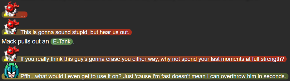 After having Part 2 and Part 2.5 both hint at the idea of this story’s main villain (later revealed to be Mega Beedrill) neglecting and/or hurting their own henchmen, I decided to take that further with this part of the story, having Mack, Yuugen-V, and Terumi learn just how little control the Seekers of Strength actually have over their situation, causing them to sympathize with them more.